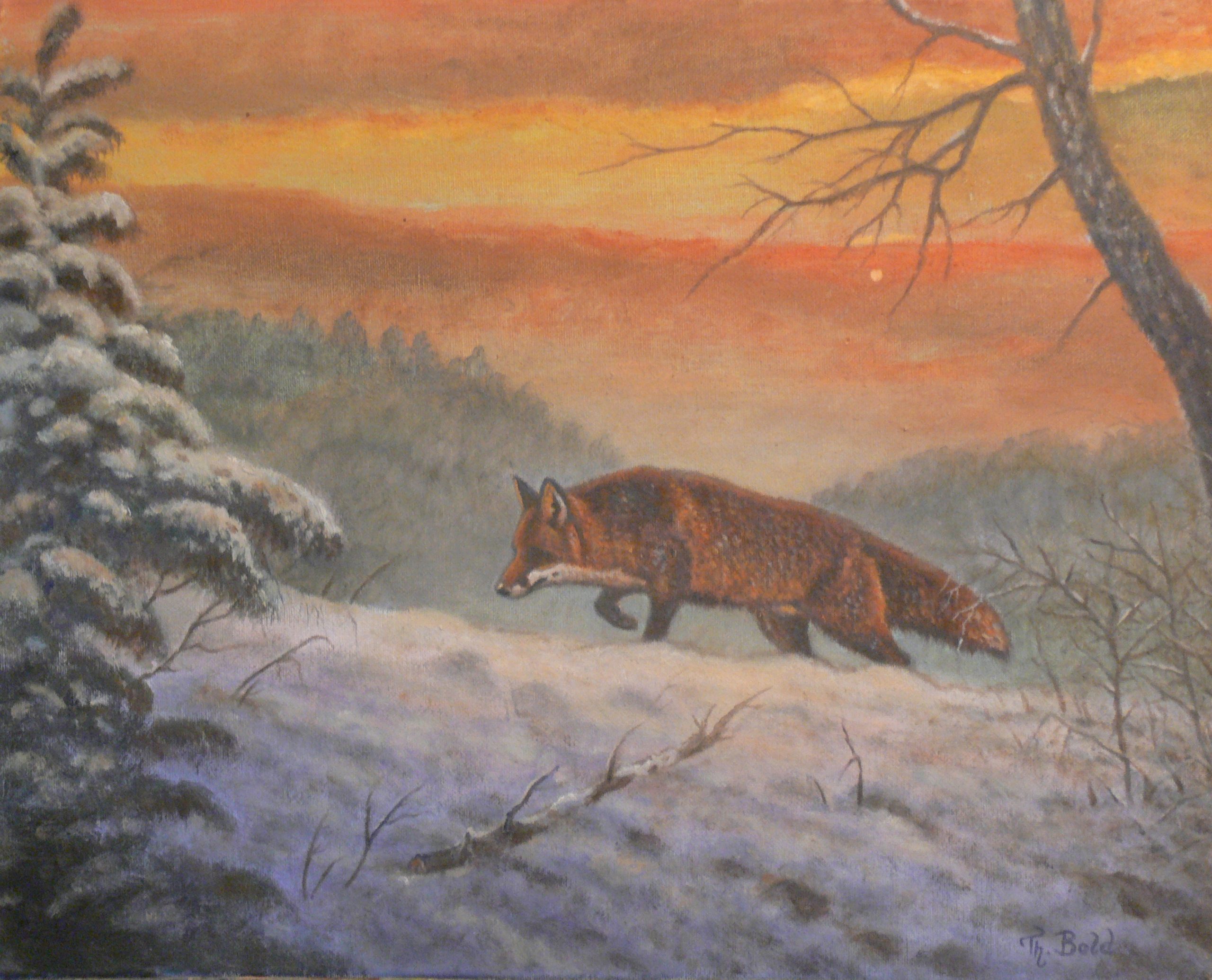„SCHNÜRENDER WINTERFUCHS“ – 40 x 50cm